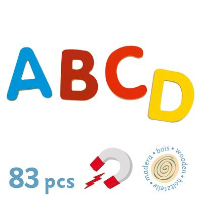 Litere magnetice pentru copii, confecţionate din lemn. Dimensiune unei litere: între 3-4 cm. Confecționat din lemn și vopsele non toxice conform reglementărilor EN71&ASTM.