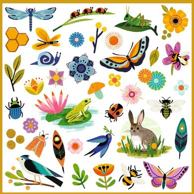 Un set de 160 de autocolante cu păsări, fluturi, flori, fructe și animale mici de descoprit în grădină… există ceva pentru toată lumea! Copiii pot aranja numeroasele autocolante oricum le place pentru a crea scene ca din povești.