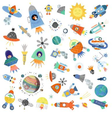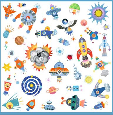 Un set de 160 de autocolante cu tema spațiului: rachete, astronauți, planete, stele… există ceva pentru toată lumea! Copiii pot aranja numeroasele autocolante oricum le place pentru a crea scene fantastice.