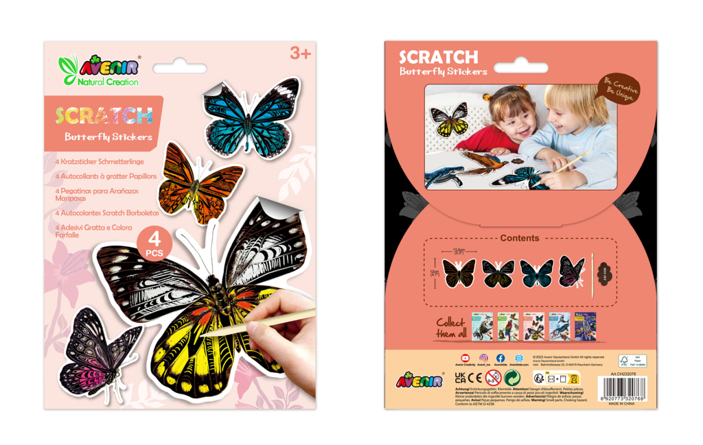Cadou Perfect: Cu designul său atrăgător și efectul captivant de răzuire, setul de abțibilduri razuibile - Fluturi este cadoul ideal pentru copiii pasionați de natură și de artă creativă.