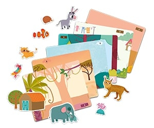 Setul include 6 planse decor si 180 abtibilduri cu tema animalelor care traiesc la ferma si in jungla.