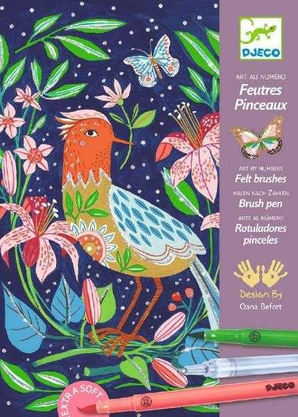Set creativ cu planșe pentru desen. Conține 4 planșe preilustrate, 6 carioci pensulă cu două capete + 1 carioca cu sclipici pentru decorul final, manual de instrucțiuni, manual cu instrucțiuni.