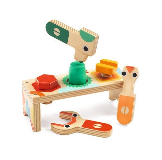 Bricolaj, îndemânare, motricitate, culori, forme geometrice … toate învățate de cei mici ca o joacă cu ajutorul bancului de lucru.
