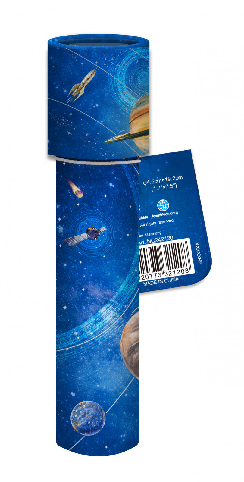- 🪐 Caleidoscop cu design spațial, decorat cu planete și stele