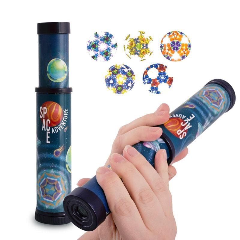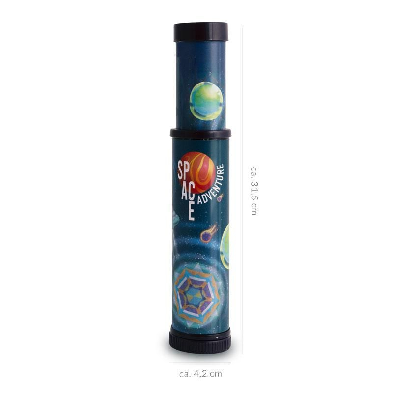 Distractie galactica in format XL! Descopera modele unice si fascinante cu acest caleidoscop telescopic! Intoarce-l si exploreaza designul cosmic care incurajeaza imaginatia si descoperirea. Perfect pentru aventurile spatiale, acesta este un cadou ideal pentru tinerii exploratori. Dimensiunile produsului inclusiv ambalajul sunt de 4,0 cm x 4,0 cm x 22,5 cm.