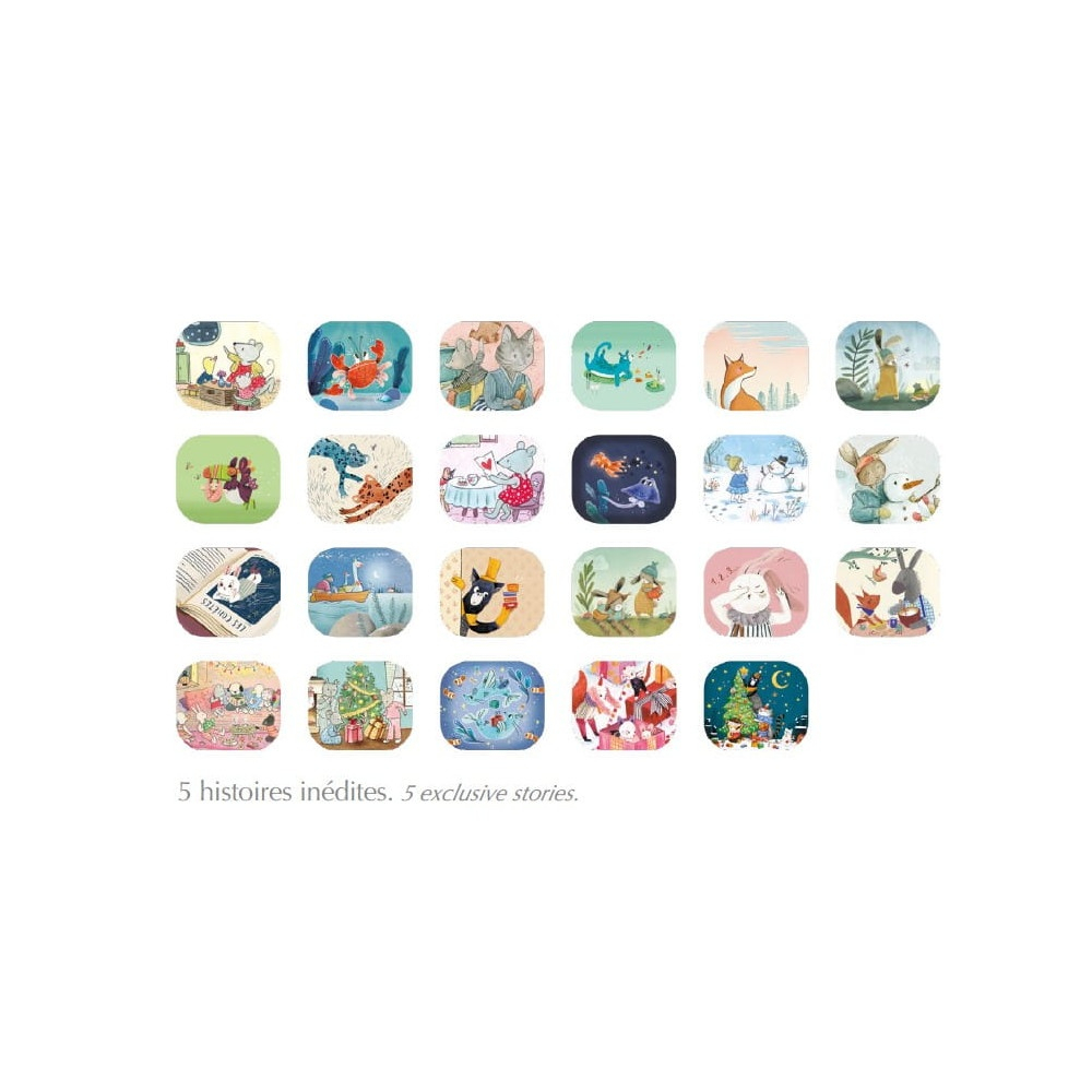 Calendar de Advent ilustrat pe tema colecției "Big Family" Un calendar advent frumos și original - "Big Family" vă invită să numărați împreună până la Crăciun. Calendarul ascunde 24 de ferestre care se deschid în fiecare dintre cele 24 de zile până la Crăciun. Fereastra nr. 1 conține o lanternă cu proiector, iar ferestrele următoare conțin discuri cu povești. Vizionarea și povestirea basmelor seara, poate fi o alternativă a cititului împreună înainte de culcare. Este o modalitate excelentă de a petrece timp prețios cu întreaga familie. Inventarea poveștilor stimulează imaginația unui copil și dezvoltă creativitatea. Deschiderea unei ferestre în fiecare zi stimulează curiozitatea copilului și exersează răbdarea. Conține: calendar Advent cu ferestre care se deschid, lanterna proiector si 23 de discuri cu povești. Dimensiuni: 25.5 x 32.5 x 4 cm . Vârsta recomandată: +4 ani. Confecţionat din carton și plastic, conform reglementarilor EN71&ASTM. AVERTISMENT! Contraindicat copiilor sub 3 ani, conţine piese mici, pericol de înghițire. A se folosi sub directa supraveghere a unei persoane adulte. Citiţi cu atenţie eticheta înainte de a înmâna jucăria copilului. Producător Moulin Roty, Franța.