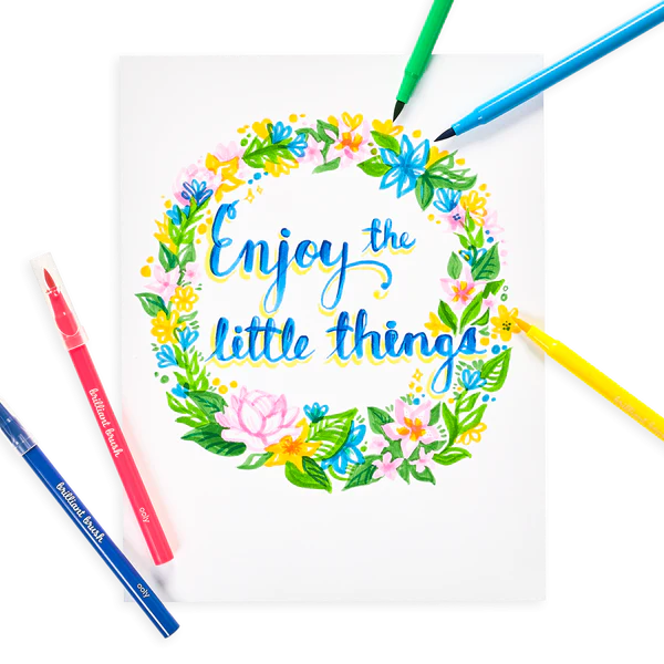 Cariocile Brilliant Brush sunt, de asemenea, excelente și pentru proiectele de caligrafie. Aceste carioci pensulă sunt realizate cu cerneală fără acid și vin într-o cutie de transport reutilizabilă pentru o călătorie și depozitare ușoară.