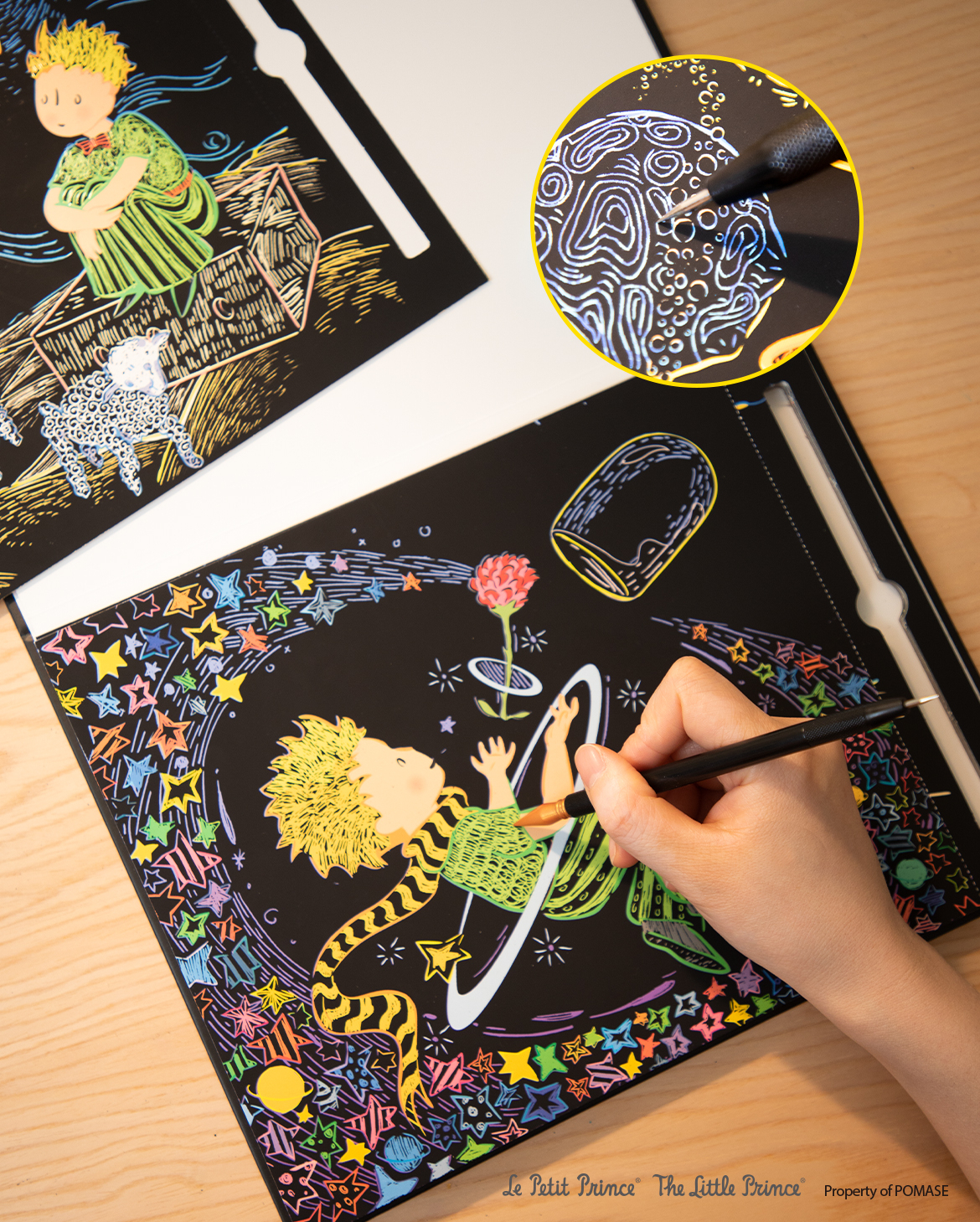 🌟 Inspirat de povestea fermecătoare a Micului Prinț, această Carte de Razuit oferă o călătorie magică de descoperire și colorat, dezvăluind universul ascuns sub suprafață.
