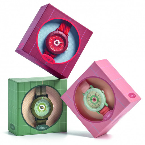 Conținut: ceas cu cuarț, cu curea reglabilă din material textil, ambalat în cutie decorativă.