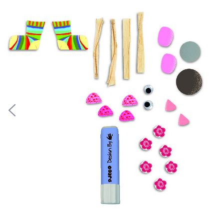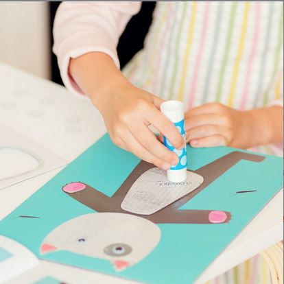 Cutia conține 4 imagini de completat (21 x 28 cm), o multitudine de accesorii de lipit pentru fiecare planșă, un tub de lipici și o cărticică cu instrucțiuni prin imagini, pas cu pas.