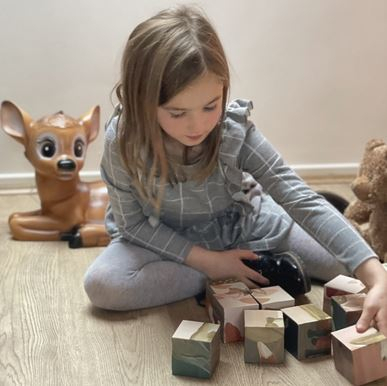 9 cuburi cu ajutorul cărora copilașul poate compune puzzle-uri cu animăluțe îndrăgite de cei mici.