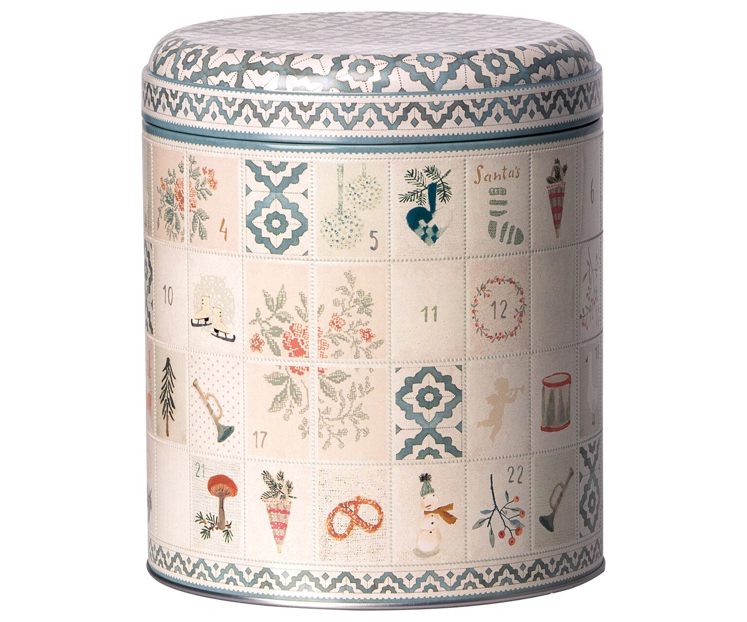 O cutie frumoasă, specială, pentru stocarea tuturor biscuiților proaspăt copți. Desenele Maileg cu tematică de sezon de pe cutie vor genera bucurie și o adevărată atmosferă de Crăciun.
