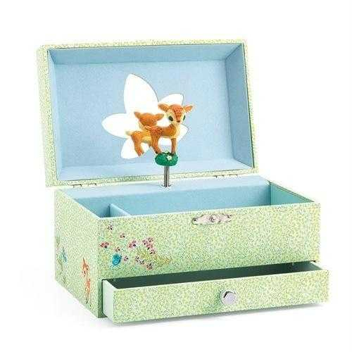 Cutie muzicală cu figurină căprioara, pentru bijuterii, cu sertar.