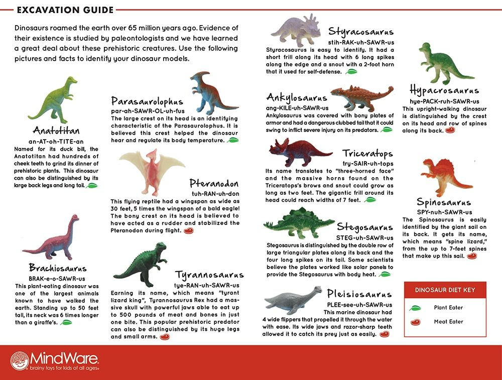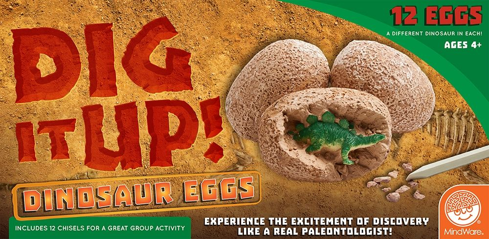 Fiecare ou din cutie contine un dinozaur diferit! Pur si simplu inmoaie oul din argila in apa si apoi da jos, cu grija, coaja pentru a descoperi dinozaurul din interior. Setul include o duzina de oua din lut, impachetate individual, fiecare cu o unealta de cioplit cu instructiuni si un ghid de excavare din care vei afla mai multe informatii despre dinozaurul descoperit. Este o activitate perfecta, atat de grup, cat si individuala!