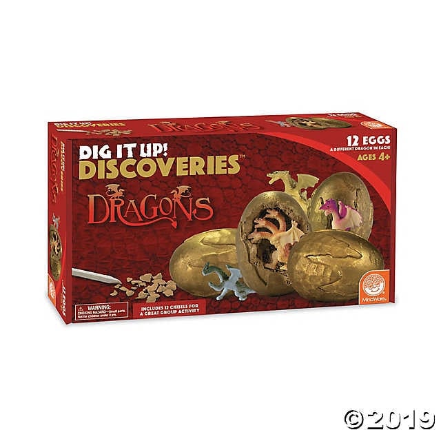 Esti gata de excavat? Dig it up – oua de dragoni include 12 oua de aur, fiecare cu o figurina personalizata, sub forma unui dragon. Ghidul de excavare explica puterile pe care le are fiecare creatura mitica.