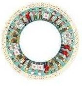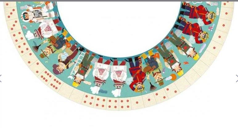Domino de formă circulară, atunci când toate piesele sunt aranjate setul având un diametru de 56 cm.