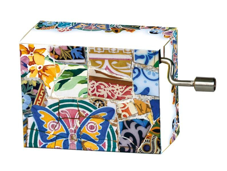Flasneta, Gaudi Cutiuță muzicală tip flașneta cu ilustrație mozaic Gaudi. Melodie: "Free as the wind" Articol decorativ. Nu este o jucărie! Mecanismul este confecţionat din lemn şi metal, cutia este din carton. AVERTISMENT: Contraindicat copiilor sub 3 ani. Conține părți mici ce pot fi înghițite. Pericol sufocare. A se utiliza sub directa supraveghere a unei persoane adulte. Producător: Fridolin, Germania