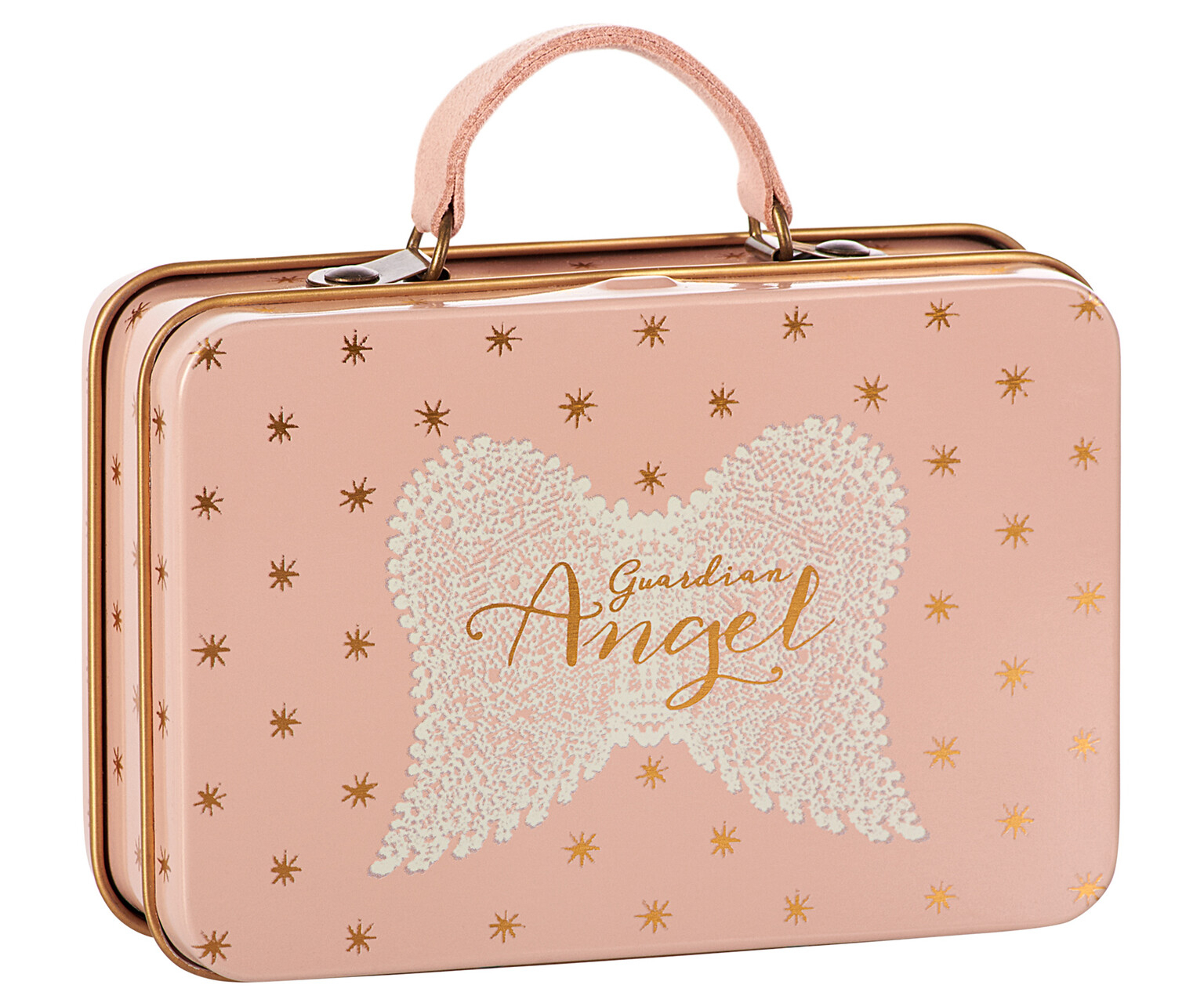 Gemantan de călătorie roz cu steluțe aurii, din metal, perfect pentru călătoriile familiei de șoricei Maileg.