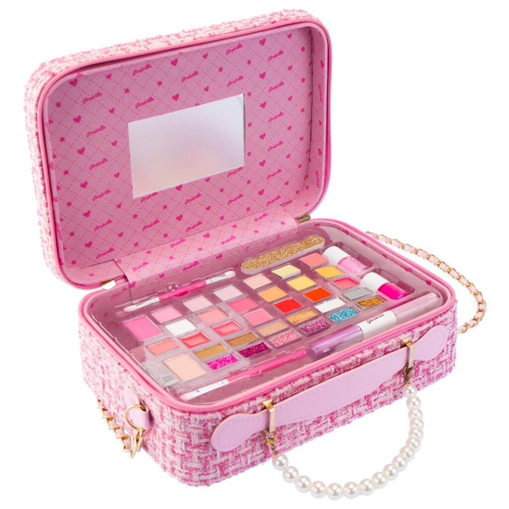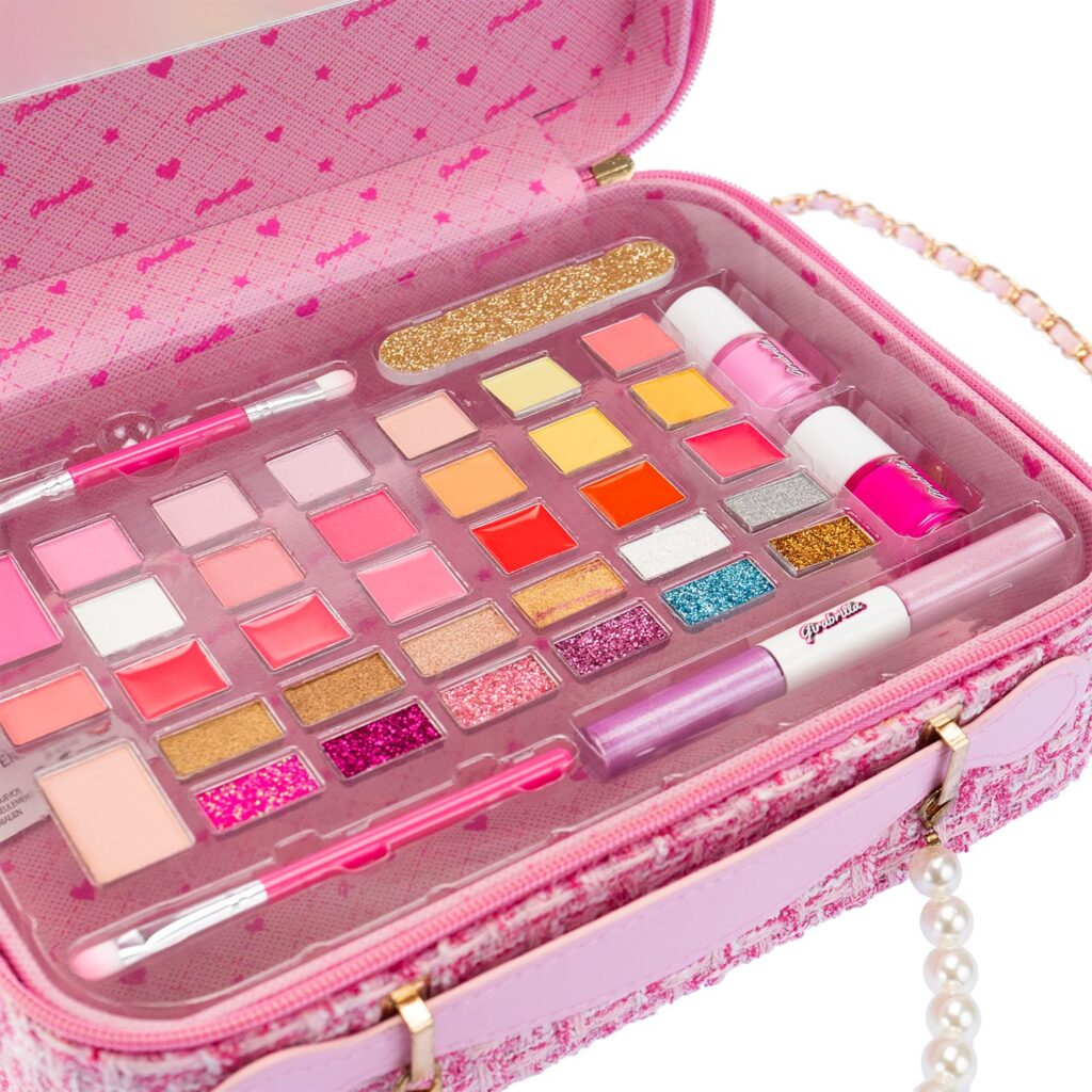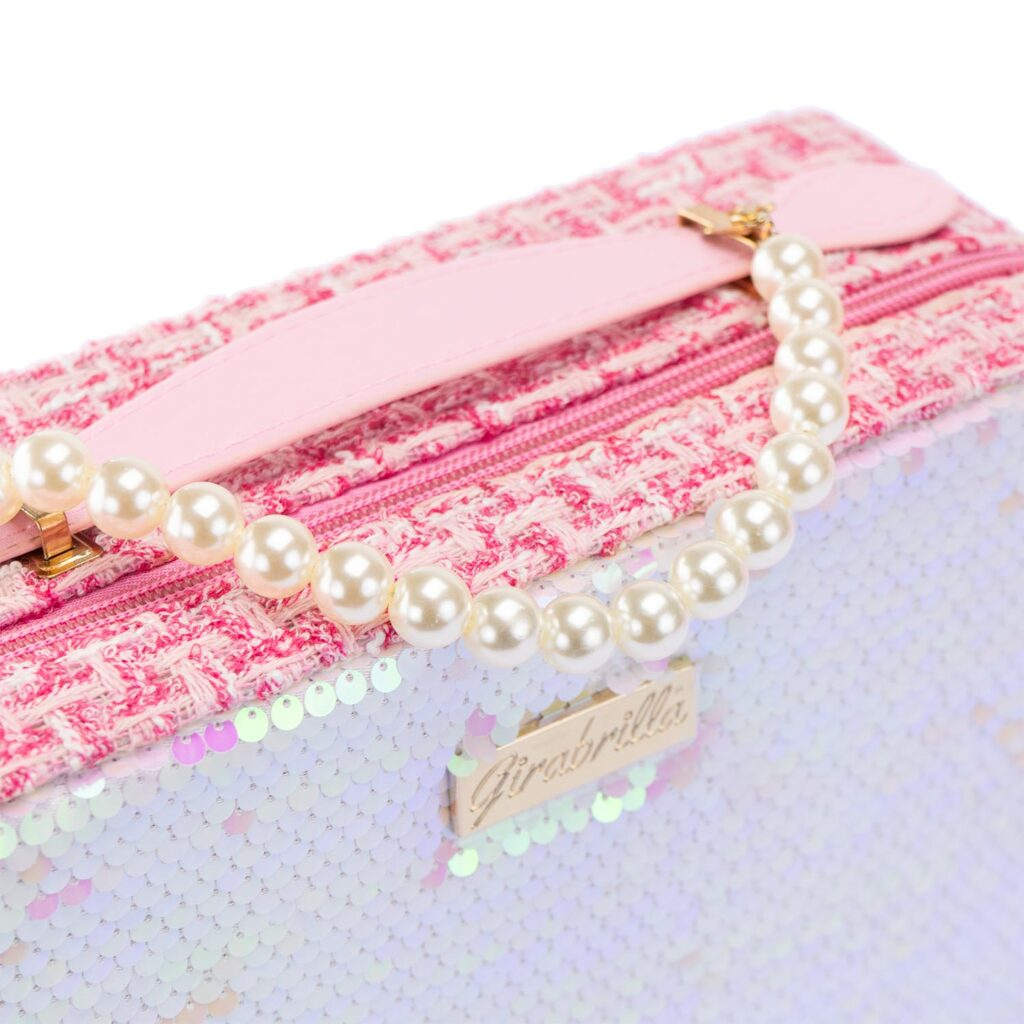 Girabrilla Tweed Maxi Case este o geantă elegantă de machiaj, decorată cu paiete reversibile și material tweed alb. Ușor de transportat datorită mânerului superior și bretelei de umăr, această trusă este ideală pentru a lua cu tine tot ce ai nevoie pentru un look de poveste.