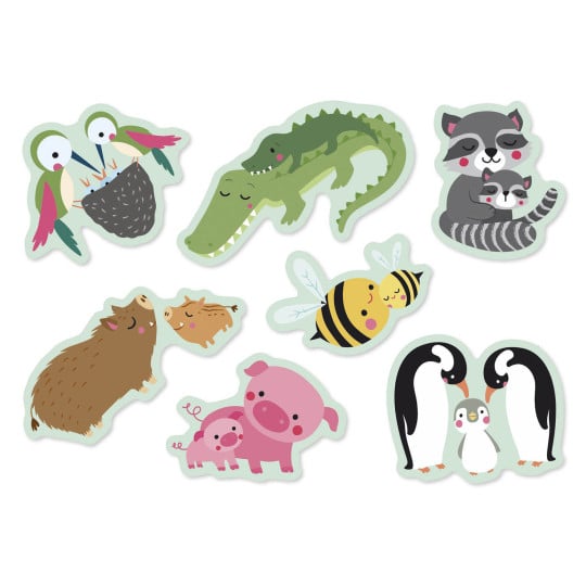 O noua gentuta cu abtibilduri repozitionabile pline de iubire si tandrete pe tema duo-ului dintre parinti si puiutii lor de animale!Fiecare autocolant are aproximativ 5 cm si se detaseaza foarte usor.