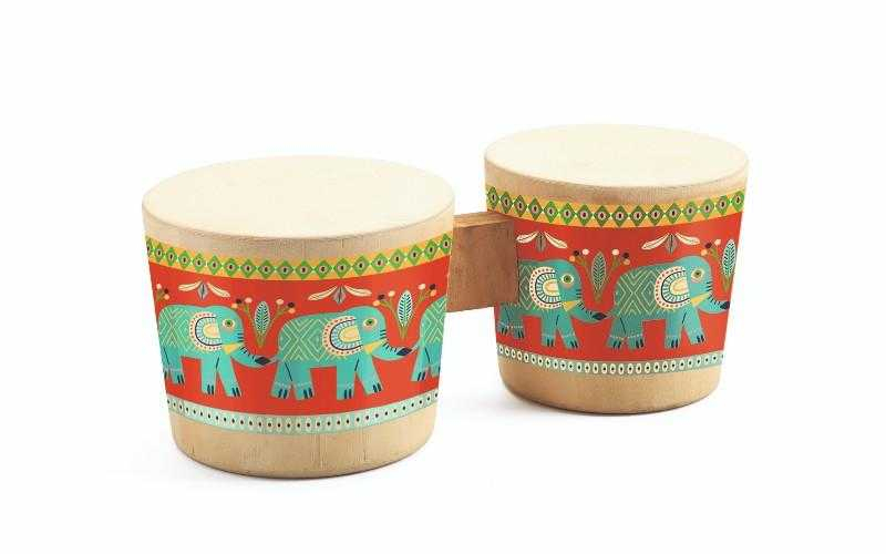 Bongo format din 2 tobe. Dimensiune toba mare 12 x 10 cm. Dimensiune toba mica 11 x 10 cm.
