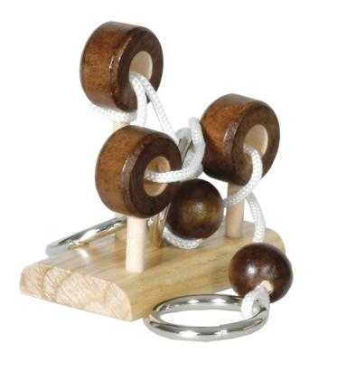 ELIBEREAZA INELUL- 5 Eliberează inelul - Modele cu diferite grade de dificultate, care îți pun răbdarea și perspicacitatea la încercare. După ce ai reușit, încearcă să îl aduci în poziția inițială pentru următorul jucător. Confecționat din lemn, metal, șnur și alte materiale non-toxice conform reglementărilor EN71 & ASTM. Vârsta recomandată: + 8 ani. Grad de dificultate: *** AVERTISMENT: Contraindicat copiilor sub 3 ani. Conține șnur, piese mici ce pot fi înghițite. A se utiliza sub directa supraveghere a unei persoane adulte. Producător: Fridolin, Germania.