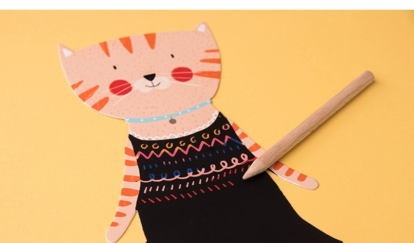 Joc creativ de razuit Animale prietenoase Surprize frumoase și animale prietenoase așteaptă să fie personalizate cu modele create de copii. Răzuiești și obții haine colorate pentru fiecare personaj. Conține: 10 planșe diferite și o ustensilă ”creion” din lemn. Confecționate din materiale și culori non - toxice. Ilustrații de Txell Darne.  Vârsta recomandată: +4 ani. Avertisment: Contraindicat copiilor sub 3 ani. A se folosi strict sub supravegherea unei persoane adulte. Producător: Londji, Spania