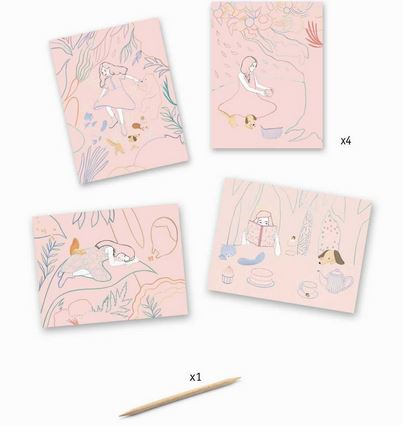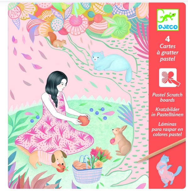 Joc creativ de razuit, 4 planșe cu modele deosebite și culori pastel, delicate și inspirate din natură. Răzuiești și obții cele mai frumoase 4 tablouri.