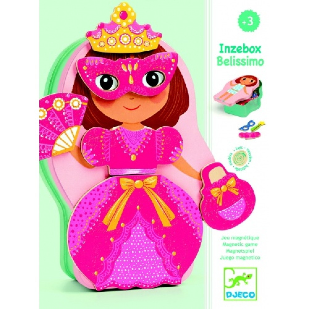 Conține o cutie metalică și 24 piese din lemn, cu magnet pe spate. Se pot realiza personaje diferite, zâne prietenoase și prințese vesele.
