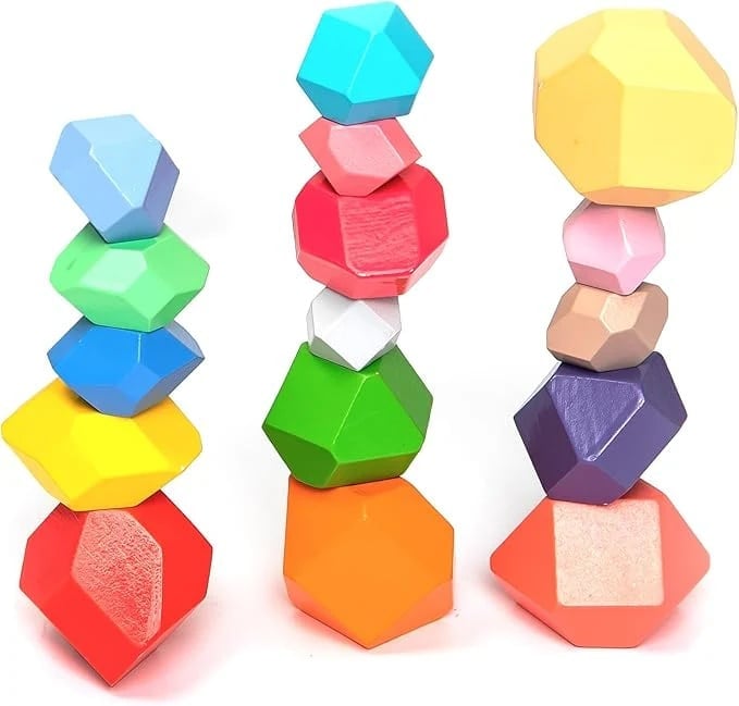 Joc de stivuire pietre Piesele din lemn cu forme neregulate sunt jucăria perfectă pentru a oferi ore întregi de distracție și învățare. Aceste pietre din lemn de înaltă calitate sunt naturale, non-toxice, șlefuite și lustruite pentru a oferi o suprafață netedă și sigură pentru copiii. Fiecare piatră este atent lucrată pentru a fi plăcută la atingere și are o culoare strălucitoare atractivă care va încânta orice copil. Piesele sunt ideale pentru mânuțele copiilor. Joc de echilibru sau joc de construcție 2D și 3D. Exersează îndemânarea și coordonarea ochi-mână a celor mici. Conținut: 16 piese din lemn de forme, mărimi și culori diferite. Vârsta recomandată: +3 ani. Confecționat din lemn cu vopsele ecologice pe bază de apă. Conform EN71&ASTM cu certificare CE. AVERTISMENT: Contraindicat copiilor sub 3 ani! Se recomandă supravegherea copilului de către un adult în timpul jocului. Produs în China pentru UMU Toys, Cehia.