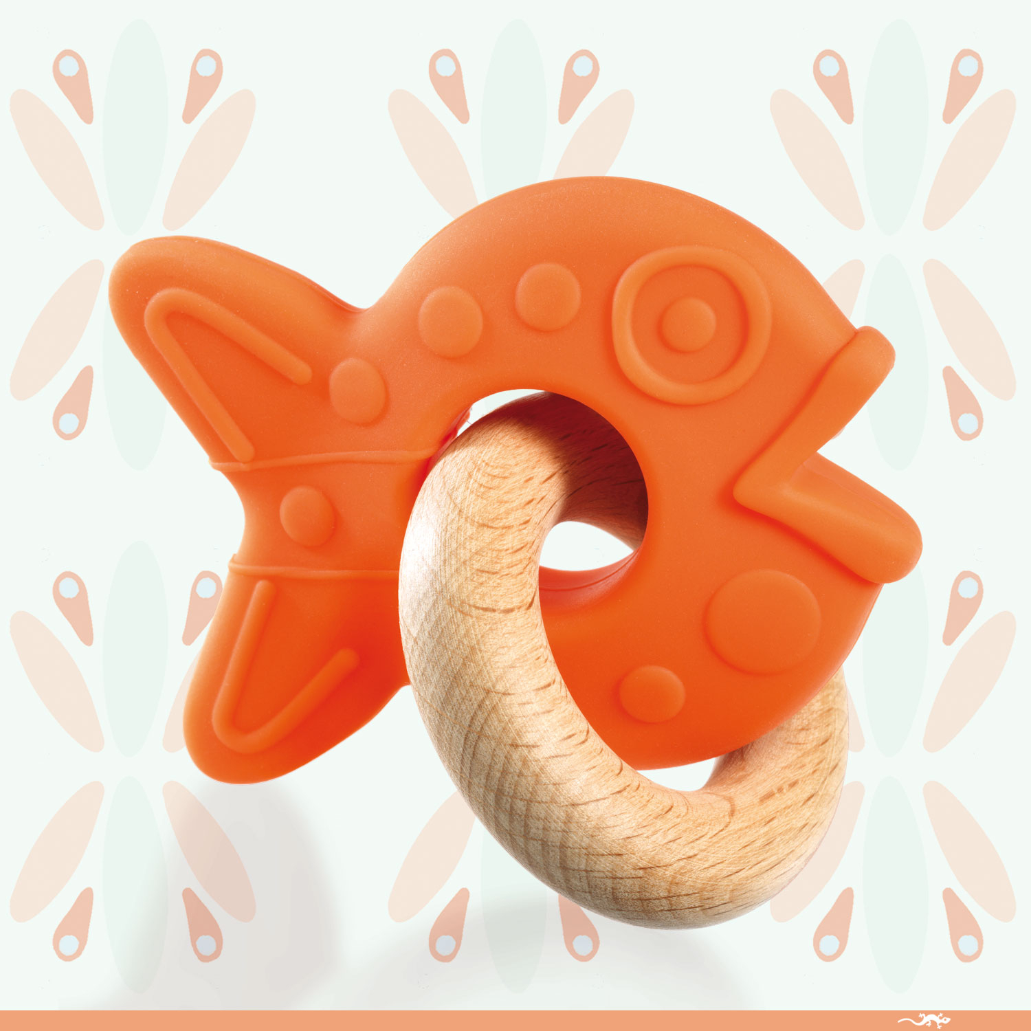 Jucarie bebe BabyFishy Jucărie gingivală din lemn și silicon non-alergic. Dezvoltată cu o echipă multidisciplinară (neuropsiholog, pediatru și logoped). Orificiile fac jucăria ușor de prins de către bebeluși. Partea din silicon permite masajul gingiilor. Vârsta recomandată: + 3 luni. Confecționată din lemn și plastic siliconat. Conform reglementărilor EN71&ASTM. AVERTISMENT: Contraindicat copiilor sub 3 luni. A se utiliza sub directa supraveghere a unui adult. Producător: Djeco, Franța.