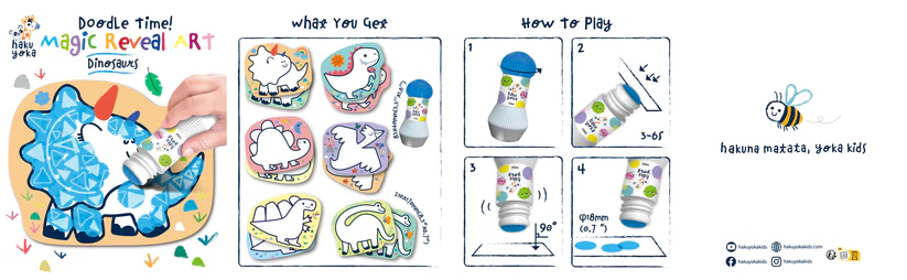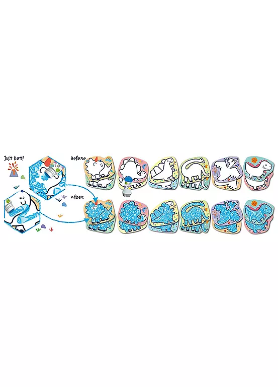 🦕 Kit Arta Magica - Dinozauri oferă copiilor o experiență artistică plină de surprize! Acest set captivant le permite celor mici să descopere modele ascunse cu ajutorul unui marker special, transformând fiecare punct într-o revelație colorată.