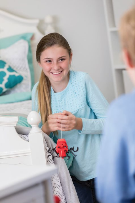 Robotul Păianjen se lasă în sus și în jos pe firul său de mătase, ca un păianjen adevărat. Înfricoșător! Schimbă inteligent direcția în partea de sus și de jos.