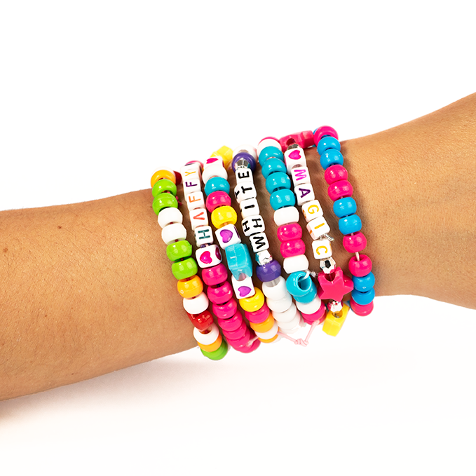 Conține peste 800 de mărgele și piese speciale pentru a crea brățări și coliere originale și pline de imaginație. Un set perfect pentru micii designeri de bijuterii!