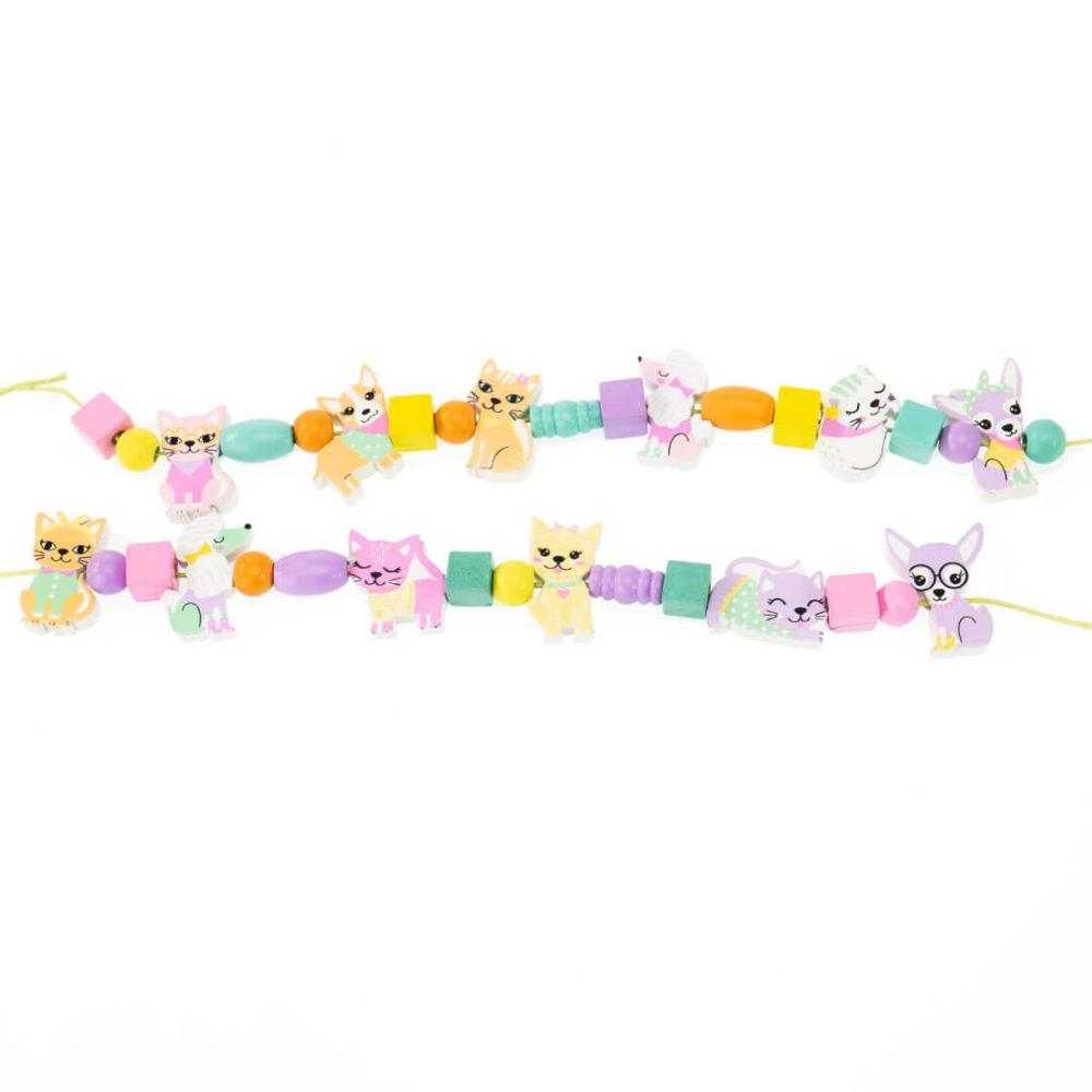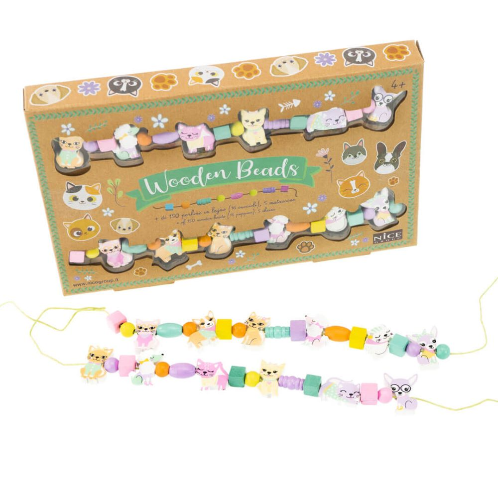 Kit de mărgele din lemn assortite pentru a crea brățări și coliere originale și creative pentru copii, într-o cutie eco-friendly. Distracție garantată pentru a compune decorațiuni, a inventa combinații noi și a adăuga culoare stilului personal cu ajutorul mărgelelor cu animăluțe!