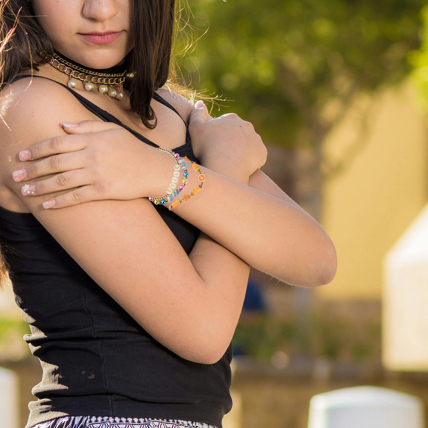 Înșiră mărgelele pe firul elastic după gustul tău pentru a crea coliere și brățări originale și unice.
