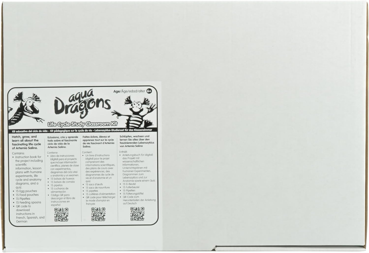 - Conținut complet pentru clasă – kitul include manual cu instrucțiuni și informații științifice, 15 plicuri cu ouă, 15 plicuri cu hrană, 15 pipete și 15 lingurițe pentru hrănire.
