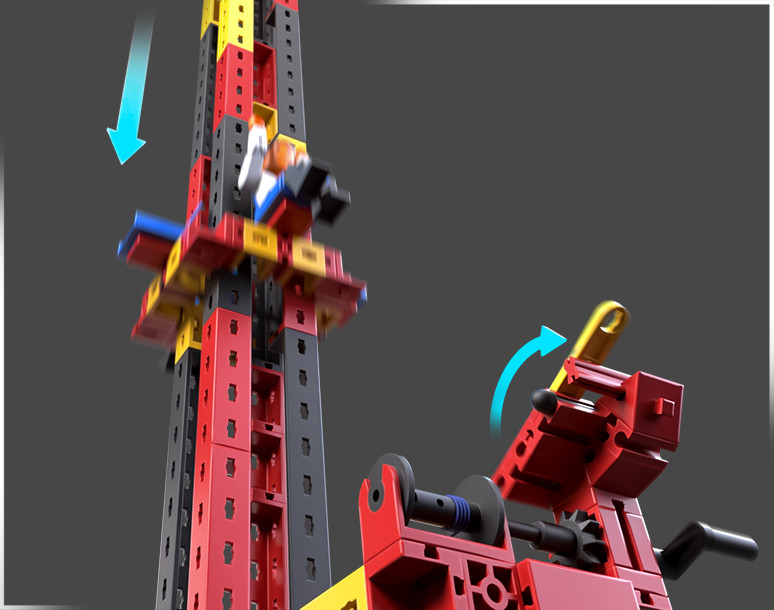Kit STEM Curse nebunesti Senzațiile tari și adrenalina sunt garantate pentru circuitele incluse în set. Cele patru modele reprezintă diverse atracții din parcul de distracții. Se merge cu toată viteza la înălțime și cu capul în jos în cercuri. Se pot construi modelele Free Fall Tower, Bungee Ball, Gyrospin și Spinmaster. Efect de învățare combinat cu multă distracție, reușind să facă înțeleasă pentru copii creativitatea și tehnologia din spatele modelelor din parcurile de distracții. Împreună cu cele 2 figurine fischertechNik, copiii au parte de multe aventuri interesante.