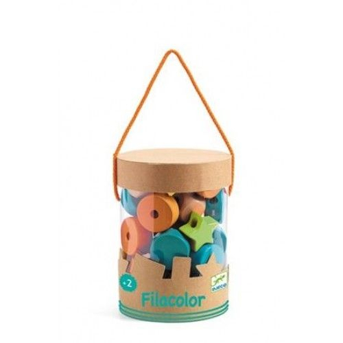 Jocul conţine 24 piese din lemn de diferite forme și culori și 2 șnururi, pe care copilul le poate înşira. Ajută la dezvoltarea motricității fine, a coordonării ochi-mână.