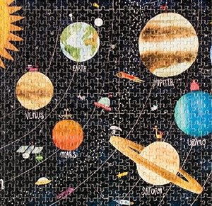 Puzzle cu 600 de piese de foarte mici dimensiuni. Imaginea finală redă sistemul nostru solar, având dimensiunea de 20 x 30 cm.
