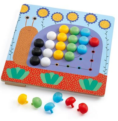 Conține: 230 de pioneze colorate, 1 planșă din lemn perforată și 8 modele de creat. Opţiunile de aranjare a pieselor sunt însă nelimitate!