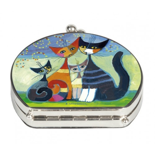 Oglindă dublă (oglindă care mărește și oglindă normală) cu carcasă metalică + textil imprimat.