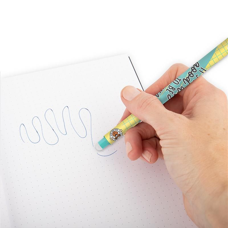Scrieti si stergeti cu usurinta! Acest pix cu gel, echipat cu cerneala albastra, se misca lin si precis pe hartie. Daca apare o greseala, aceasta poate fi stearsa rapid cu radiera atasata. Suprafata placuta la atingere ofera aderenta suplimentara si confort maxim la scriere. Un insotitor perfect pentru utilizarea zilnica.