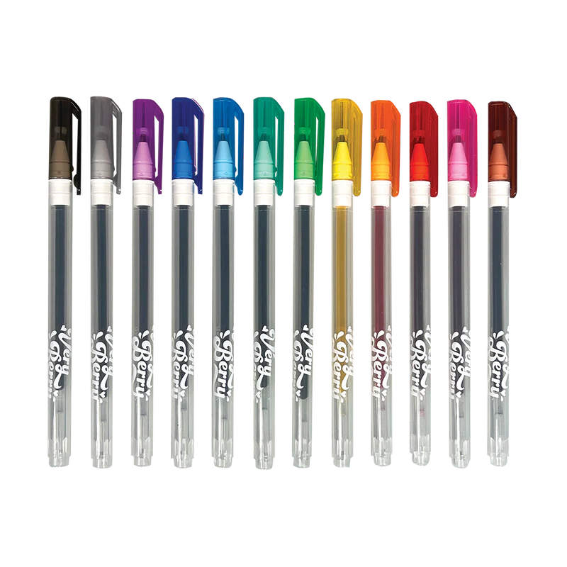Aceste pixuri cu gel colorate au toate funcționalitățile necesare altor instrumente de scris, cu beneficiul în plus al acelui miros captivant de fructe de pădure! În set sunt incluse 12 pixuri cu gel colorate diferite, dar fiecare împărtășește acel parfum de neuitat de căpșuni!
