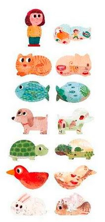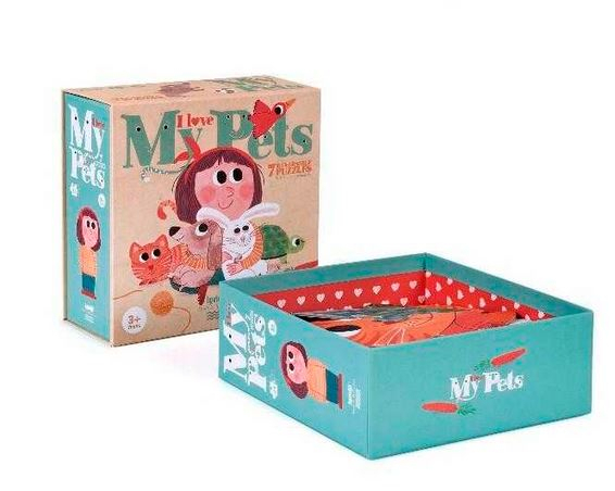 7 puzzle-uri din câte 3 piese, cu cele mai îndrăgite animale de companie.