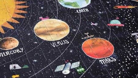 Puzzle fluorescent cu 200 de piese. Construiești o lume întreagă! Asamblează puzzle-ul și învață planetele; noaptea vei putea vedea și stelele care strălucesc, asemenea celor de pe cer.