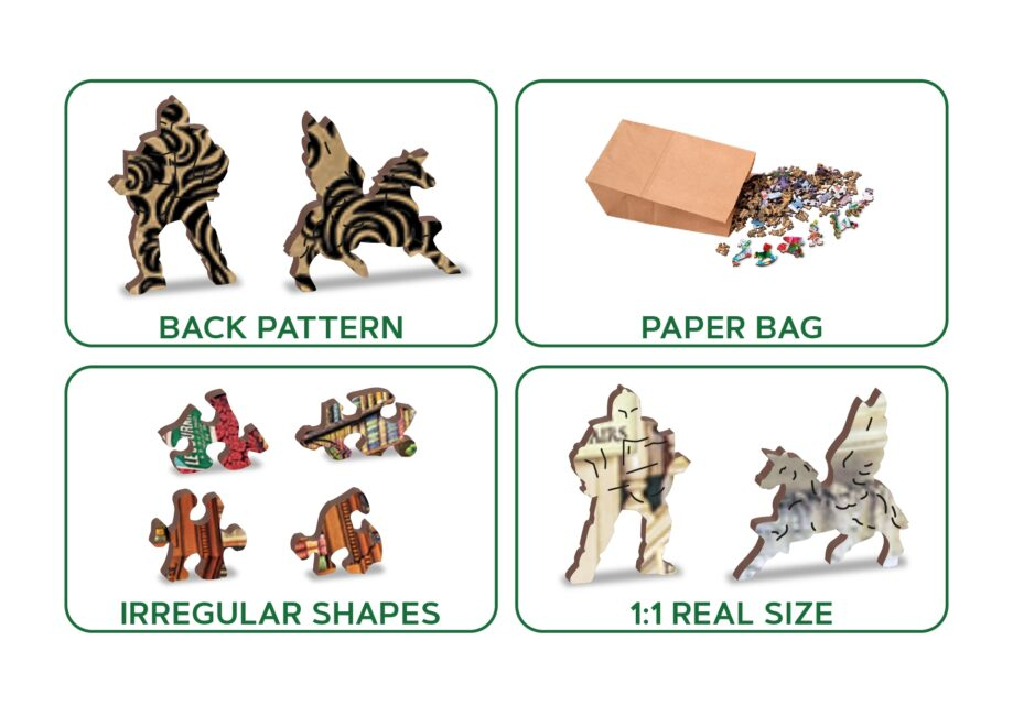 Fiecare piesa de puzzle este perfect interconectata si a fost taiata cu laserul, pentru a nu exista aschii sau colturi periculoase.