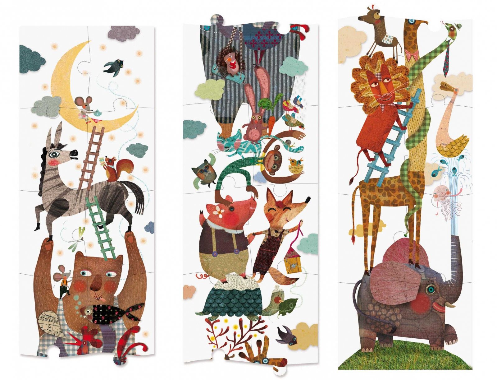 Puzzle gigant Sus pana la luna Puzzle gigant cu 24 piese. Leul stă deasupra elefantului, ursul stă pe pisică, o libelulă ajunge aproape până sus la cer...ca luna să le zâmbească tuturor. Sau e luna oare din cașcaval și șoricelul tocmai acolo a ascuns ceainicul? Dimensiune puzzle asamblat 135 x 17 cm. Vârsta recomandată: + 3 ani Confecționat din hârtie FSC și carton reciclat, conform reglementarilor EN71&ASTM. AVERTISMENT: Contraindicat copiilor sub 3 ani, conține piese mici, pericol de sufocare. A se utiliza sub directa supraveghere a unui adult. Producător: Londji, Spania