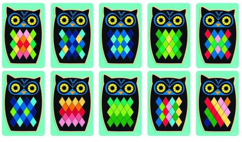 Conține planșa bază și piese mici romboide de diferite culori, cu ajutorul cărora poți crea numeroase modele.