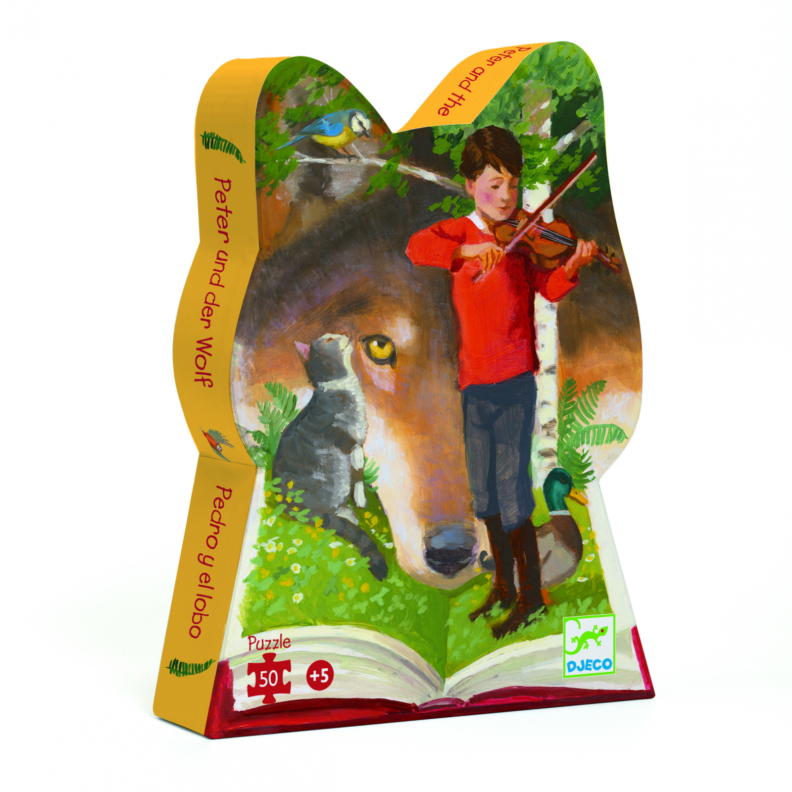 Puzzle Petrica si lupul Copiii alcătuiesc puzzle-ul în stil friză pentru a dezvălui faimoasa poveste Petrică și Lupul. Acest superb puzzle de 50 de piese vine într-o cutie având silueta unui cap de lup. Piese mari, ușor de mânuit. Un puzzle premium care poate fi construit  și refăcut, pentru a inventa și a spune povești.